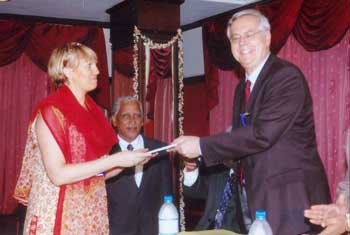 Mme Ujjawala Joglekar reçoit le premier exemplaire.