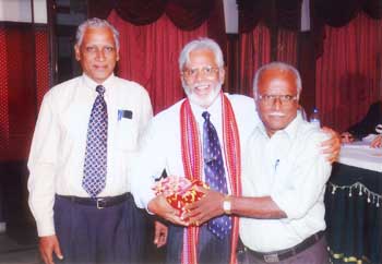Une séance du congrès : De g. à dr. : M.S.Pannirselvame, M.R.Venguattramane, Mme Varalaskhmi Anandkumar,