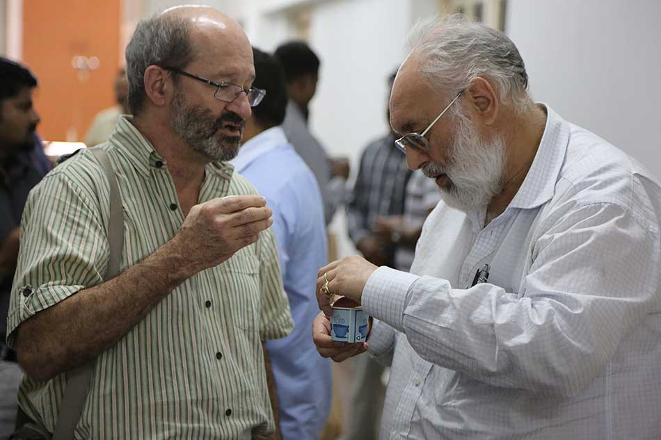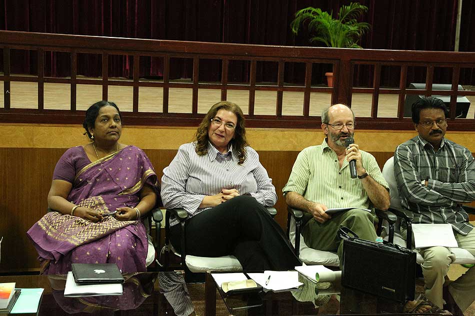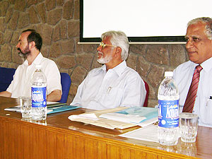 Atelier de Connexions à Madurai en août, 2008. Du g. à dr. MM Yves Loiseau, Madanagobalane et Venguattaramane