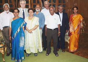 Comité de rédaction de Voies Parallèles. De g. à d. : M. K.Madanagobalane, Mme.Varalakshmi Anandkumar, M. Pierre Koest, Mme.Asha Pande, M.K.Madavane, M.R.Venguattaramane, M. R.Kichenamourty, M.S.Pannirselvame et Mlle N.C.Mirakamal