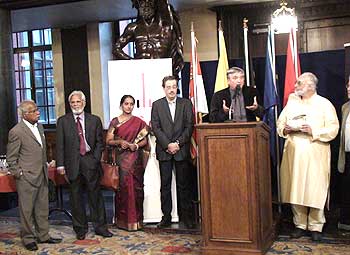 de g. à dr. : Mlle. N.C.Mirakamal, M. le doyen, M.l’échevin, M.K.Madanagobalane, M.Bernard Gheur, M.Nève
