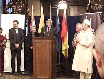 Lancement de la traduction en tamoul du Lieutenant souriant de Bernard Gheur-Exposition des tableaux de Vikram et le Vétalet du Lieutenant Souriant dans l’hôtel de Ville de Liège, le 6 Octobre 2011 |